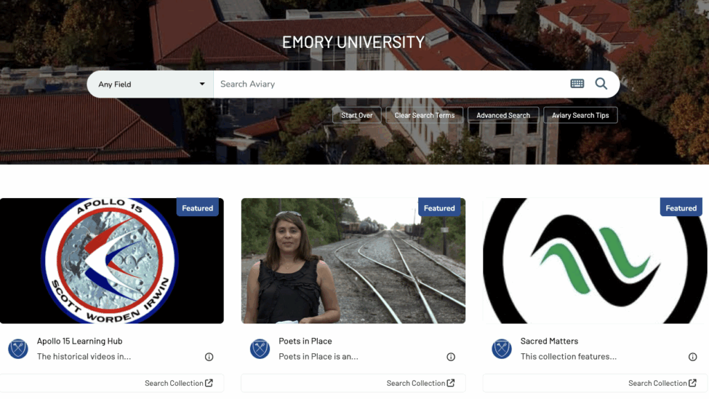 Aviary is a fully searchable database of captioned audiovisual resources created by ECDS and other units across the university.